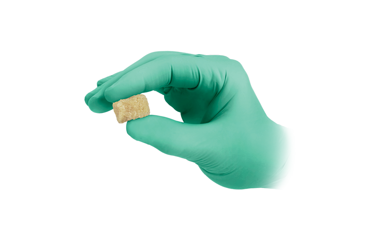 • Odlična prilagodljivost – oblikuje se po kostnem defektu, hkrati ohranja svojo obliko in stabilnost.